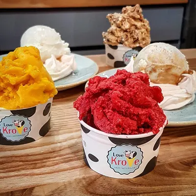 “Lodziarnia Love Krowe zbiera głównie pozytywne opinie za pyszne, różnorodne smaki lodów i miłą obsługę. Klienci chwalą unikalne kompozycje jak pistacja czy matcha truskawkowa, choć pojawiają się skargi na ceny i porcje. Ogólnie to polecane miejsce na wysokiej jakości lody rzemieślnicze.”
